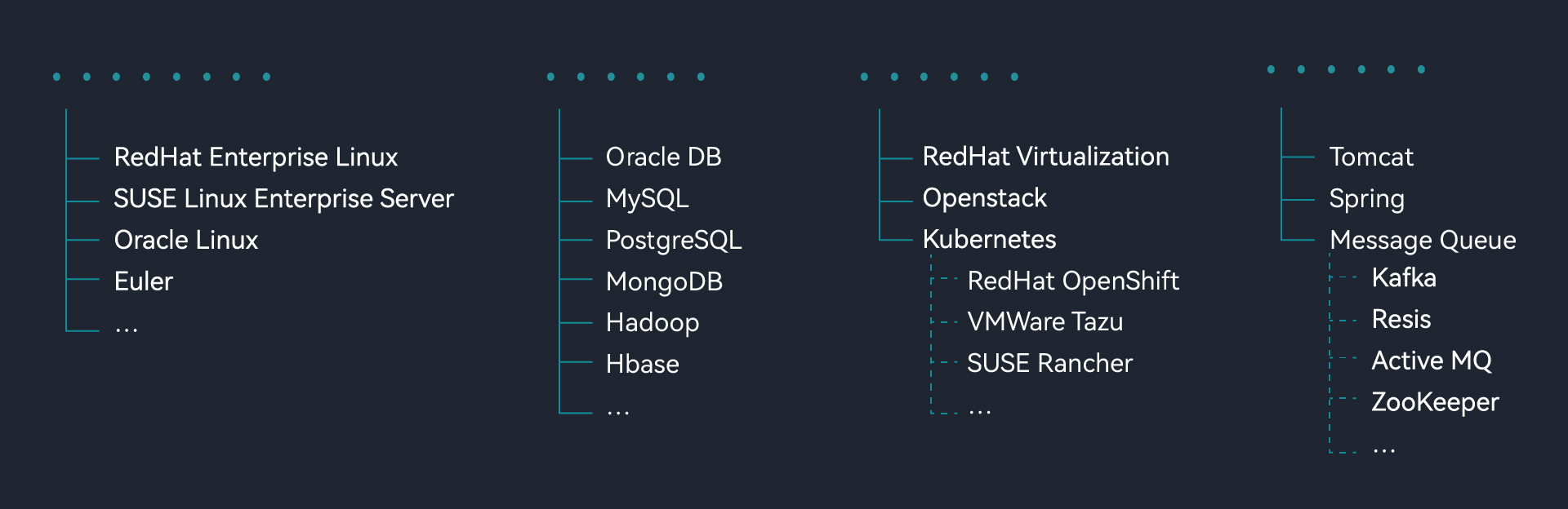 网思科技作为Redhat,Oracle,IBM,华为,腾讯、麒麟等厂商产品的高级合作伙伴,移动集采代理商,具备完善的服务资质和能力服务团队分布于四个大区19个城市,形成三级技术支持体系,拥有一批红帽专业认证RHCE/RHCA专家、Oracle OCP/OCM专家和Mysql等产品专家,运维管理解决方案专家和咨询顾问,提供覆盖全国范围专业而高效的的数据中心数智化解决方案与高可用运维支撑服务,为客户的数据中心安全运行和高效运营保驾护航。